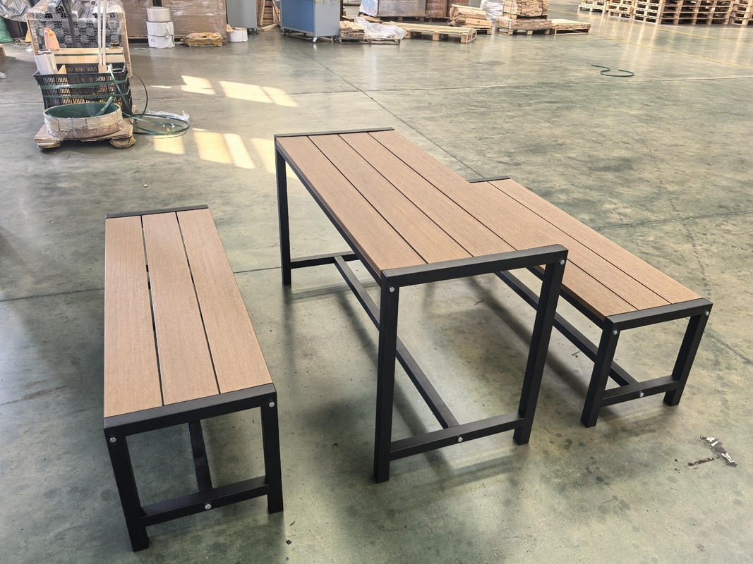 Crafted from high-density Wood Plastic Composite, the tables and chairs offer significantly enhanced load-bearing capacity and resistance to deformation. They will not crack, rot, or mold, maintaining their elegant form under scorching sun, heavy rain, or freezing cold, with a lifespan far exceeding that of ordinary wood or plastic.